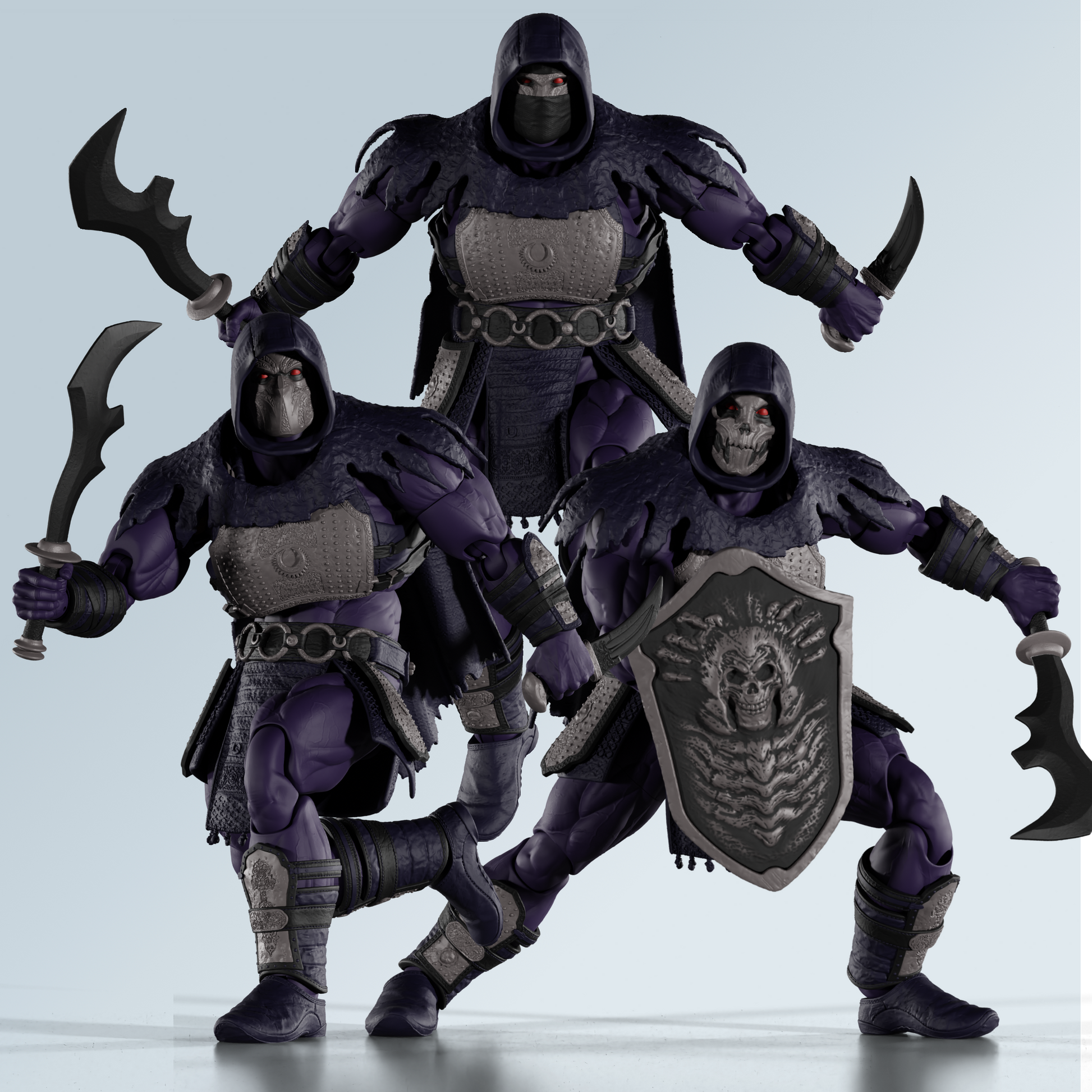 The Shaddar, the relentless dark army conjured by Grimm Skull from the literal shadows of our heroes. Imagine facing your darkest self, capable of matching your every move and you know what it is to face The Shaddar. The interchangeable face plates that come with each figure make it more interesting to collect multiple figures and build up your Shaddar Army for General Grimskull to command!